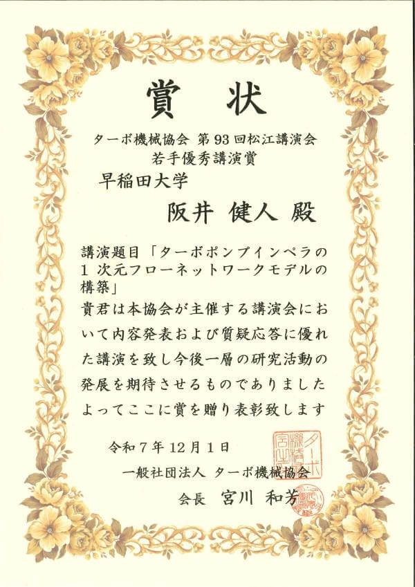 ・阪井 健人 “ターボポンプインペラの1次元フローネットワークモデルの構築”